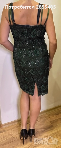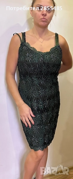 Тъмнозелена рокля с луксозна дантела. Подходяща за официални събития.