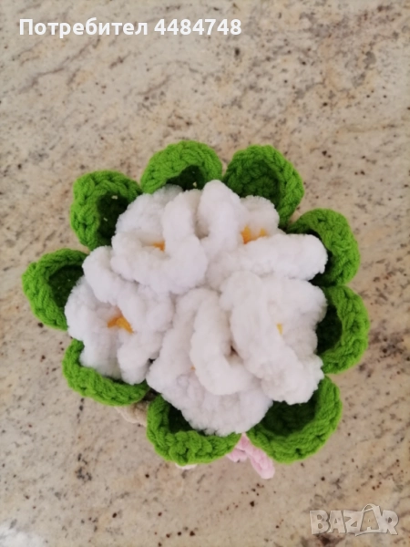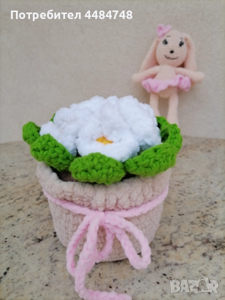 Плетена саксийка със. Теменужки.Може да се изработи и в други цветове!Пере се на 30 градуса в пералня!