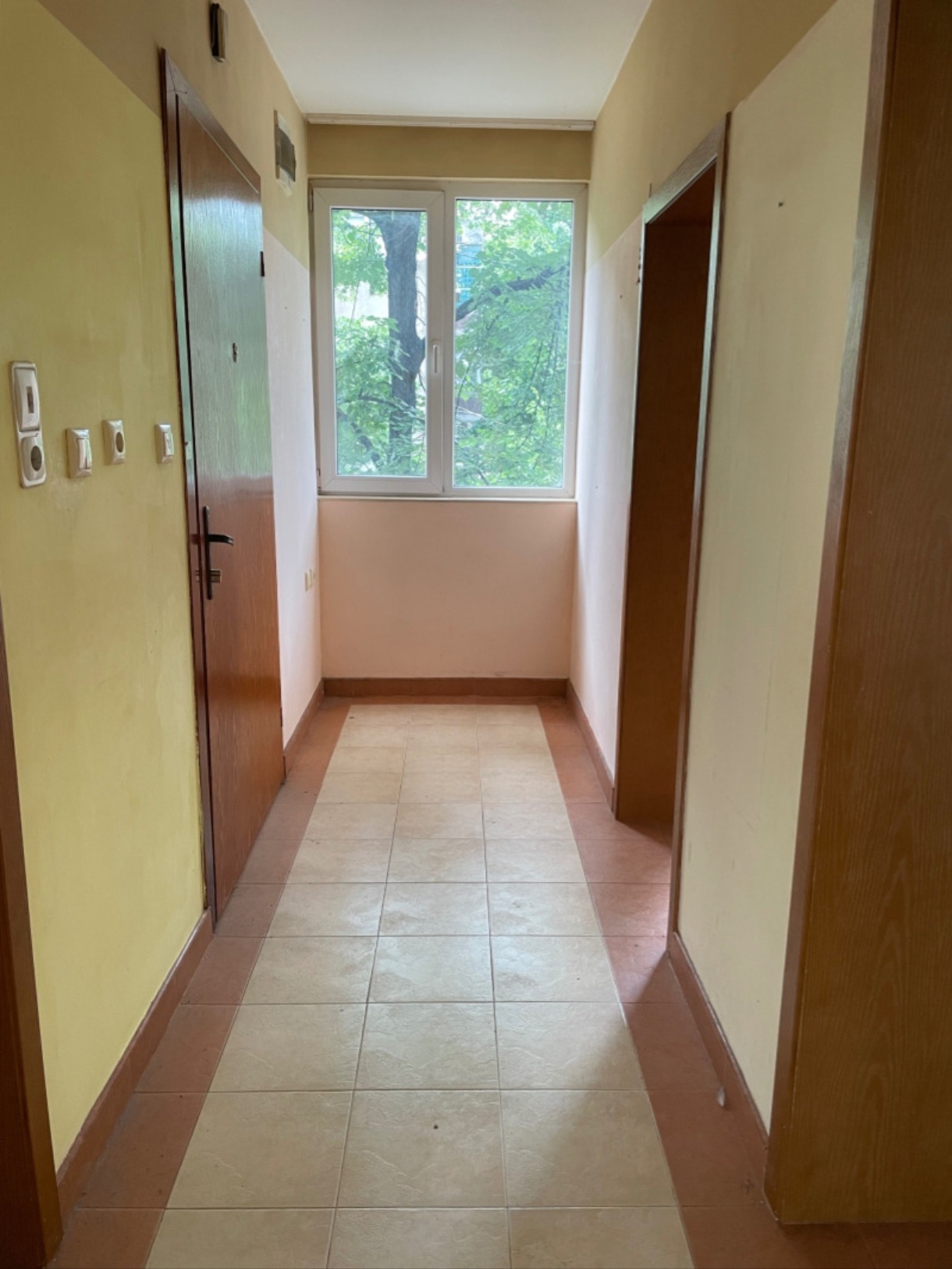 Имота е с подменени дограми, естествен паркет, висок таван. Предлага се необзаведен.