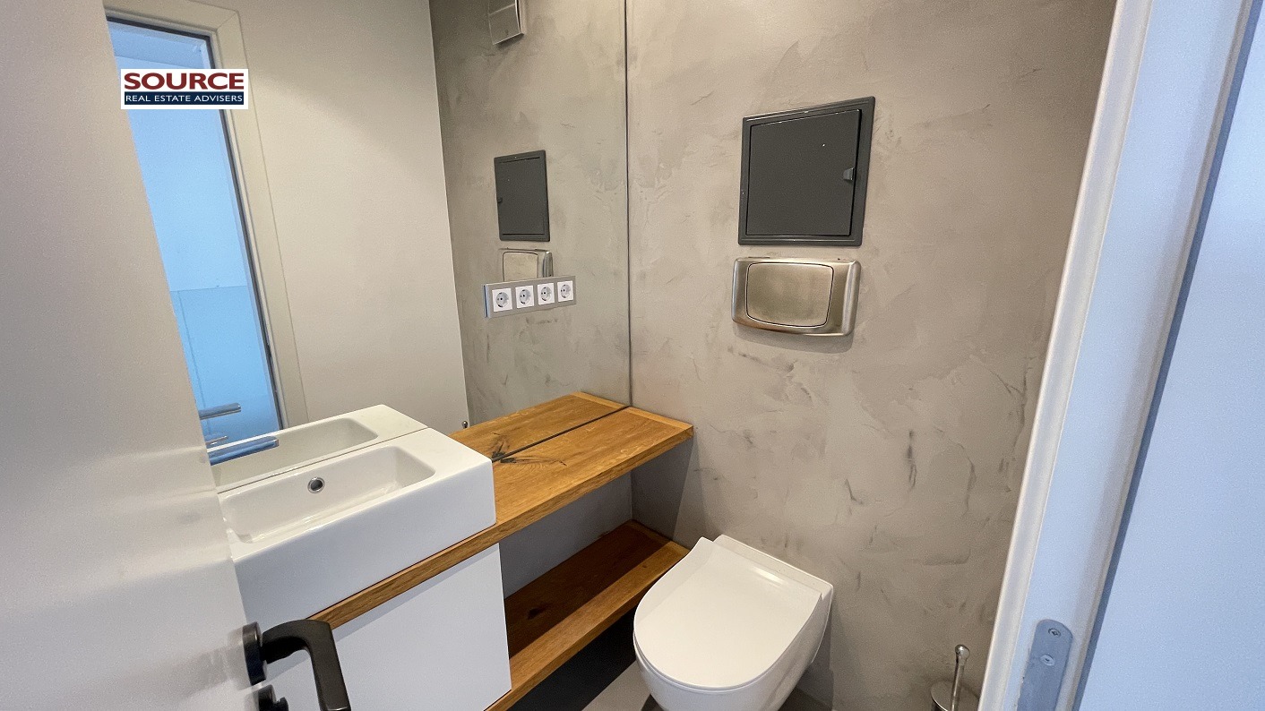 7. Паркинг: Охраняем подземен паркинг на сградата със свободни паркоместа / 1 паркомясто = EUR 200 /месечно/, няколко големи охраняеми обществени паркинга в непосредствена близост до сградата.
