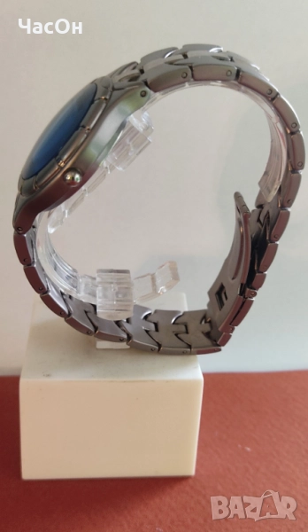 на лилав, с преливания циферблат, за да се получи желания ефект. По същия начин изпъква и надписът Quartz в долната част на циферблата. Последният е без маркери, тяхната роля изпълняват разграфявания на безела. Часовникът показва час, минута, секунда. Всички стрелки са светещи. Корпусът и верижката са с цвят титан. Капакът е на винт. Дължината на верижката, заедно с часовника е 205 мм