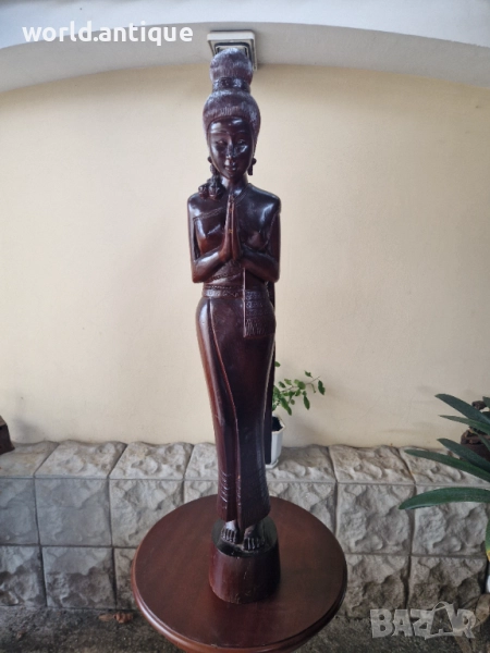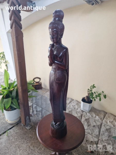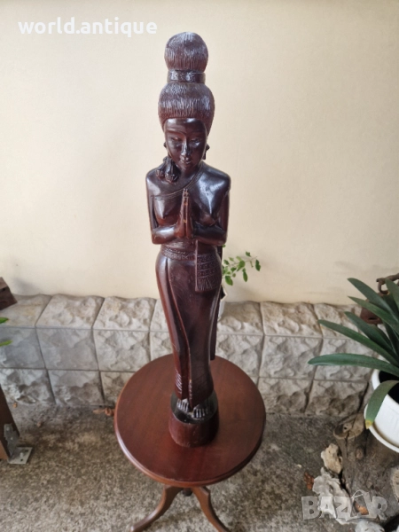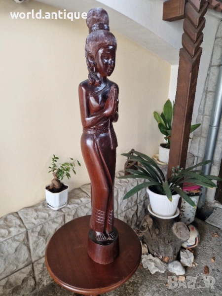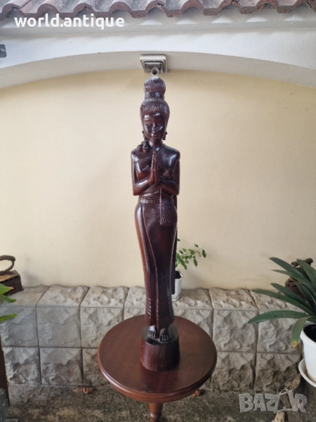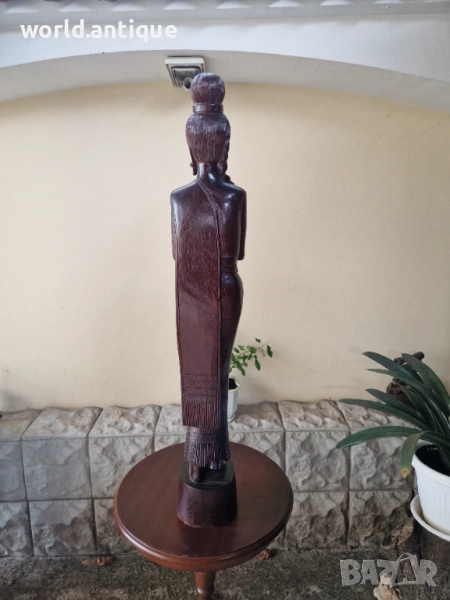 Продавам прекрасна голяма антикварна дървена фигура статуетка скулптура в перфектно състояние без никакви забележки. Тежка здрава масивна. Височина 100 см. Чудесно допълнение към интериора на Вашия дом офис вила ресторант хотел. Подходяща и за подарък. Работя с всички куриери. Отговарям бързо.