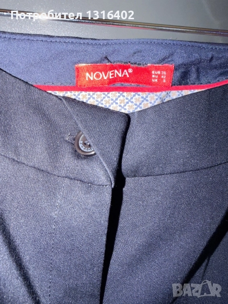Панталон тип цигара с ръб, марка Novena, размер S,eur36, тъмно син цвят, без забележки, талия 37см, ханш 45см, дължина 95см. Подходящ за офис облекло.