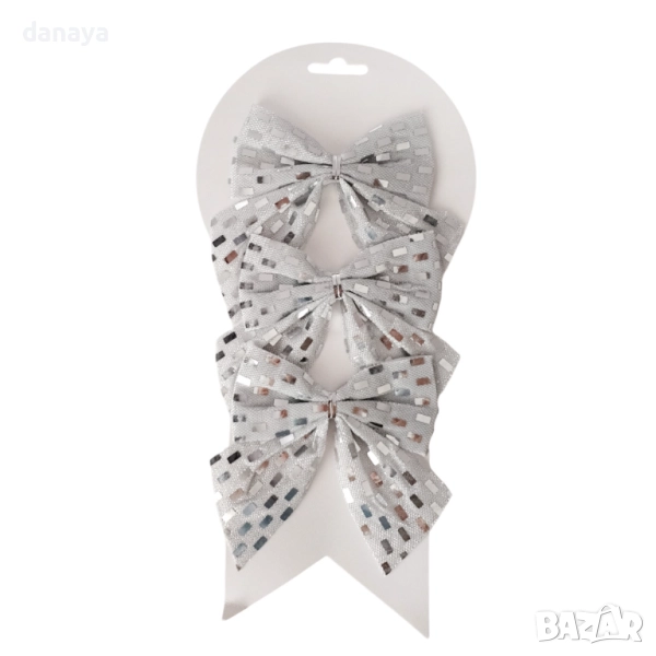 Комплектът включва 3 панделки с размер 9.5×11 см, които се предлагат в два класически цвята – червено и сребърно. Те създават празнично настроение и придават изискан завършек на всеки коледен декор. Панделките са леки, удобни за поставяне и многократна употреба, подходящи както за дома, така и за офиси, търговски обекти и витрини.