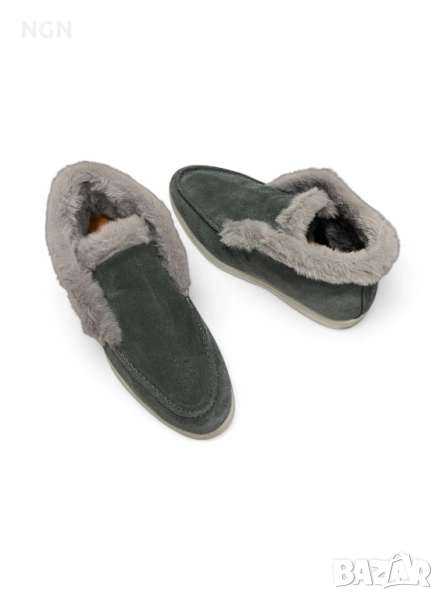 Тренд дизайнерски дамски боти с пух Loro Piana. Атрактивен модел с минималистичен италиански дизайн. Модел изработен от 100% естествен велур с комфортна стелка от естесгвена кожа с мемори пяна. Налични размери: 36, 37, 38, 39, 40, 41.
