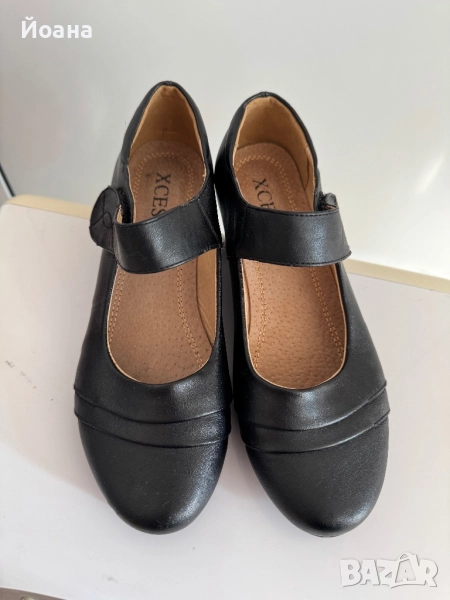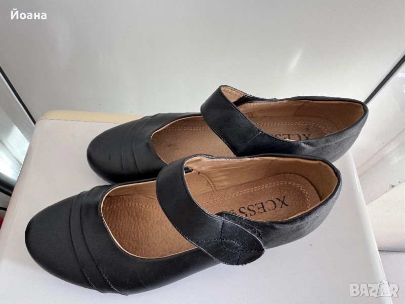 Черни елегантни дамски обувки с лепки и нисък ток . 41 номер → Обява 52020092