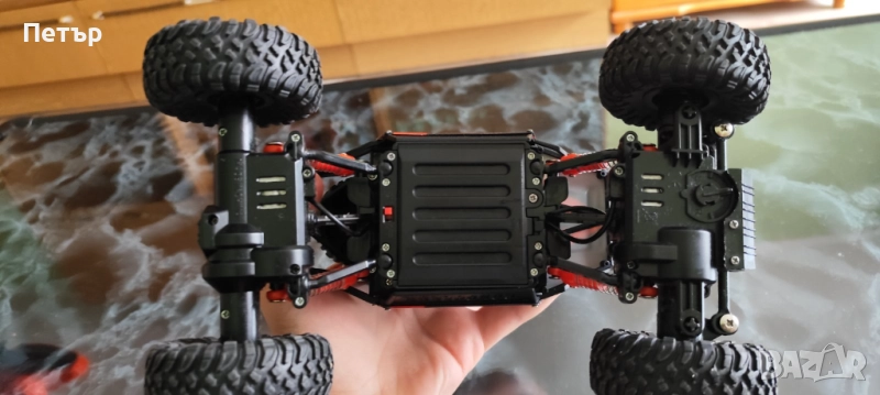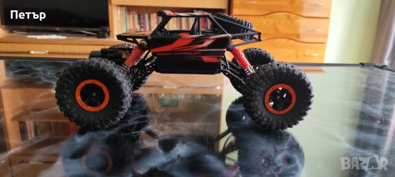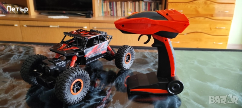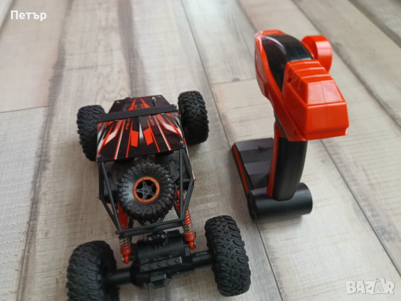Играчката е в отлично състояние, работи безотказно работи със 7бр.батерии 2АА от по-големите, 3бр. в дистанционното и 4бр.във самата количка (бъги). Предлага се с преглед тест, но без батерии .За теста си носете батерии-7бр.2АА