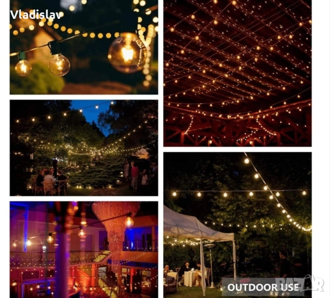 Външен LED гирлянда 15 LED G40 крушки 10м, снимка 1 - Лед осветление - 52020438 Външен LED гирлянда 15 LED G40 крушки 10м, снимка 2 - Лед осветление - 52020438 Външен LED гирлянда 15 LED G40 крушки 10м, снимка 3 - Лед осветление - 52020438 1/3
