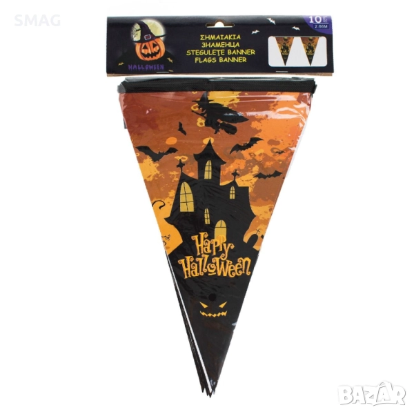 Създайте забавна и тематична Halloween / Хелоуин атмосфера с този хартиен гирлянд „Страшна къща“! Комплектът съдържа 10 хартиени знаменца в оранжево и черно (20x32 см) с обща дължина 2,66 метра. Идеален за украса на дома, офис или парти пространство, добавя цветен и тематичен акцент към вашата Halloween / Хелоуин декорация.