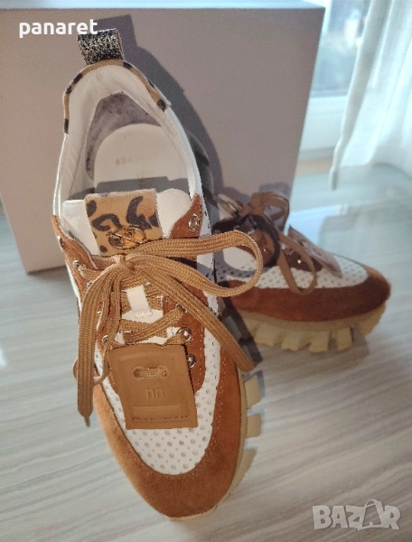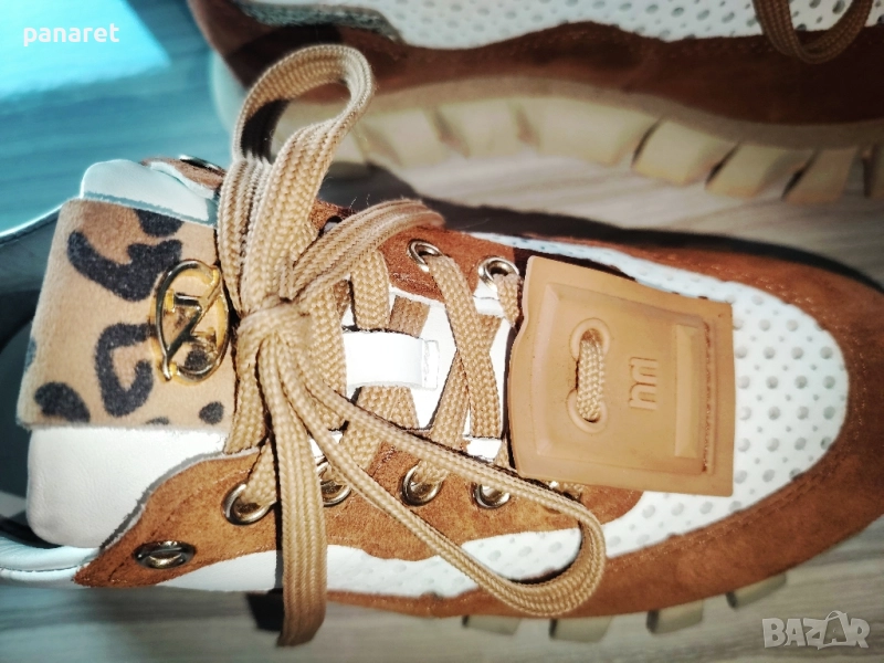 Обувки Indigo , цвят коняк и бяло, естествена кожа и велур. Размер 37, но отговарят на 38. Използвани за кратко.