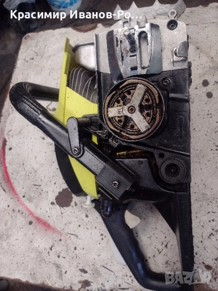 Използван бензинов верижен трион Ryobi RCS3840T с мощност 38 см³. Подходящ за рязане на дърва и клони. Лесен за работа и поддръжка