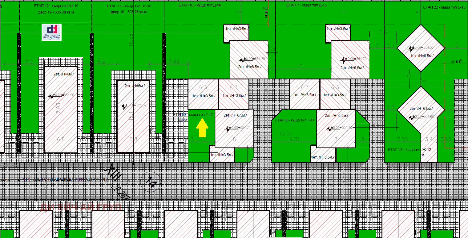 20 свободно стоящи еднофамилни къщи, всяка със собствен двор и модерна архитектура. Посочените по-долу къщи са на етап груб строеж.