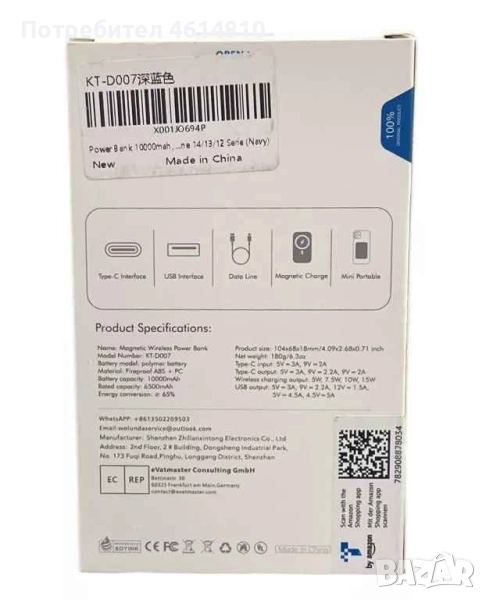 Преносима батерия Power Bank 10000 mAh 15W → Обява 52021728