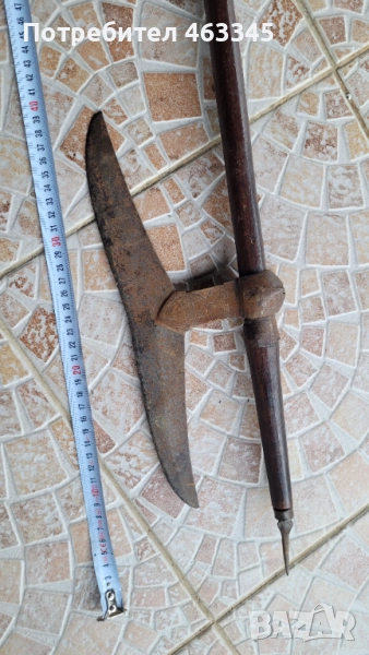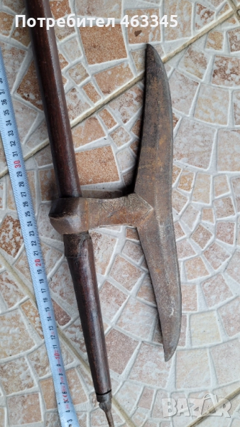 Бойна индийска брадва табар от 18-ти век. Брадвата е със сменяна във времето дръжка, но много отдавна. Дървенията е в супер състояние - здрава и лека. Желязото на брадвата е непочиствано с повърхностна ръжда тук-там и много дебела патина. Украсена и от двете страни с геометрични гравюри в основата. Рядка находка