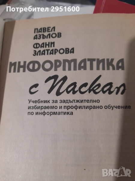 ИНФОРМАТИКА С ПАСКАЛ от Павел Азълов и Фани Златарова → Обява 52022292