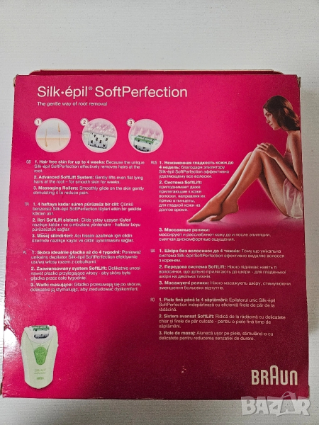 Продавам чисто нов епилатор Braun Series 3000 Braun Silk-épil SoftPerfection 3000 Series. Епилаторът е предназначен за нежно премахване на косъмчета от корена, осигурявайки гладка кожа за седмици. Моделът разполага с масажиращи ролки, които стимулират кожата, за да намалят усещането за болка. Системата от 20 пинсети и върховете SoftLift гарантират премахването дори на най-късите и прилепнали към кожата косъмчета. Предлага се с две настройки на скоростта за персонализирано обезкосмяване. Моделът има кабелно захранване и не е водоустойчив.