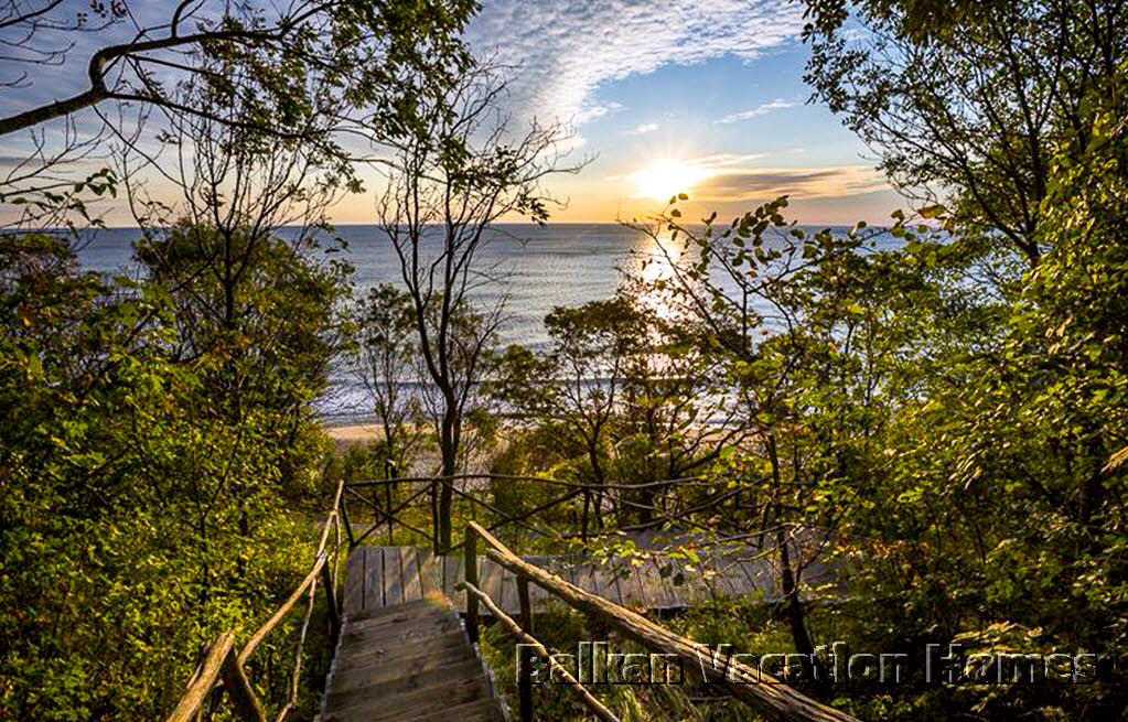 Апартаментният комплекс е разположен на върха на скала, откъдето се открива невероятна гледка към Черно море. От комплекса стълбище води надолу към плажа през малка сенчеста гора.
