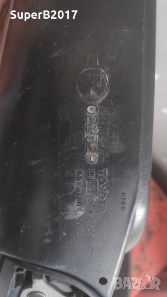 Продавам - оригинално ляво огледало с ел. прибиране без мигач за Тойота Рав 4 (Toyota Rav 4) 2008 г. със забележка. Ел. прибирането не работи, предполагам моторчето за прибирането е счупено. Всичко друго може да се ползва - стъклото, капачката има забележки по боята - сива на цвят, моторчето което регулира движението на стъклото също работи, липсва долното капаче на огледалото. Оригиналния номер е 022329. Цена - 50 лв