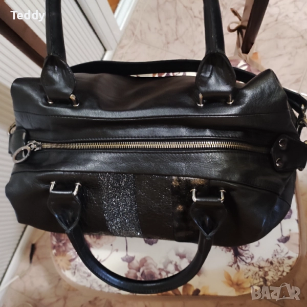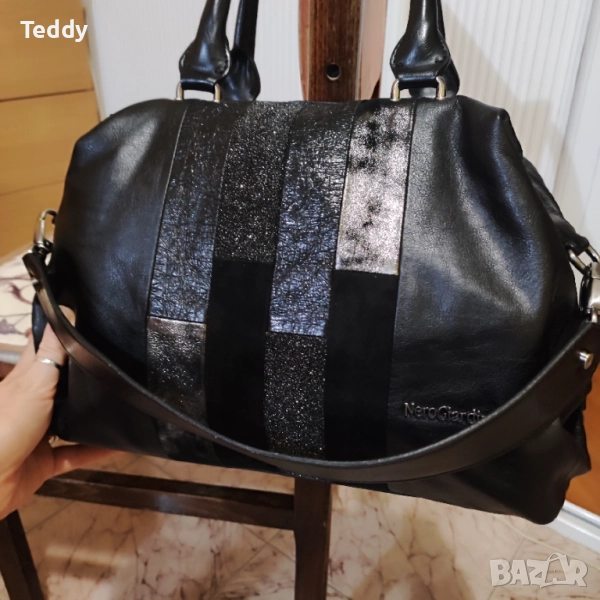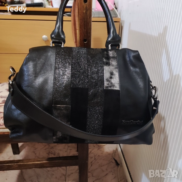 Нова луксозна италианска кожена чанта, марка Nero Giardini, мека естествена кожа.Маркова подплата и обков, вложки от велур и лъскава