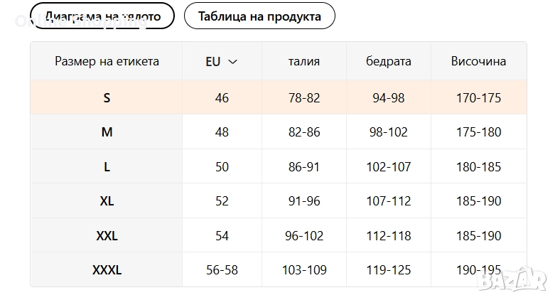 Размери: S, M, L, XL, XXL