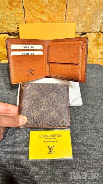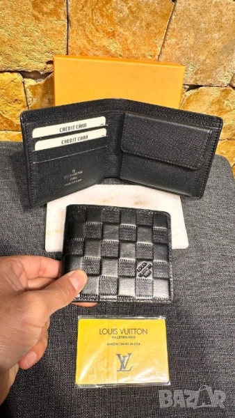 портмонета от естествена кожа в кутия louis vuitton