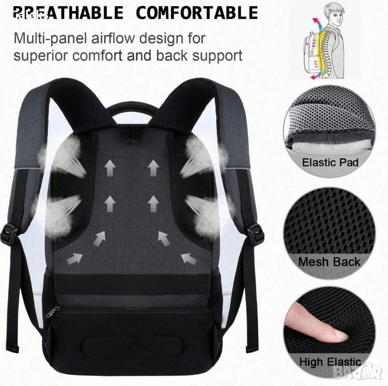 Това допринася за свободата да добавяш в нея много документи, служебни и лични вещи, както и лаптоп 15,6”.