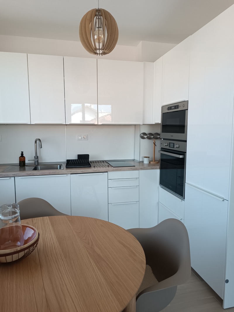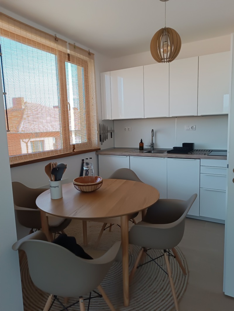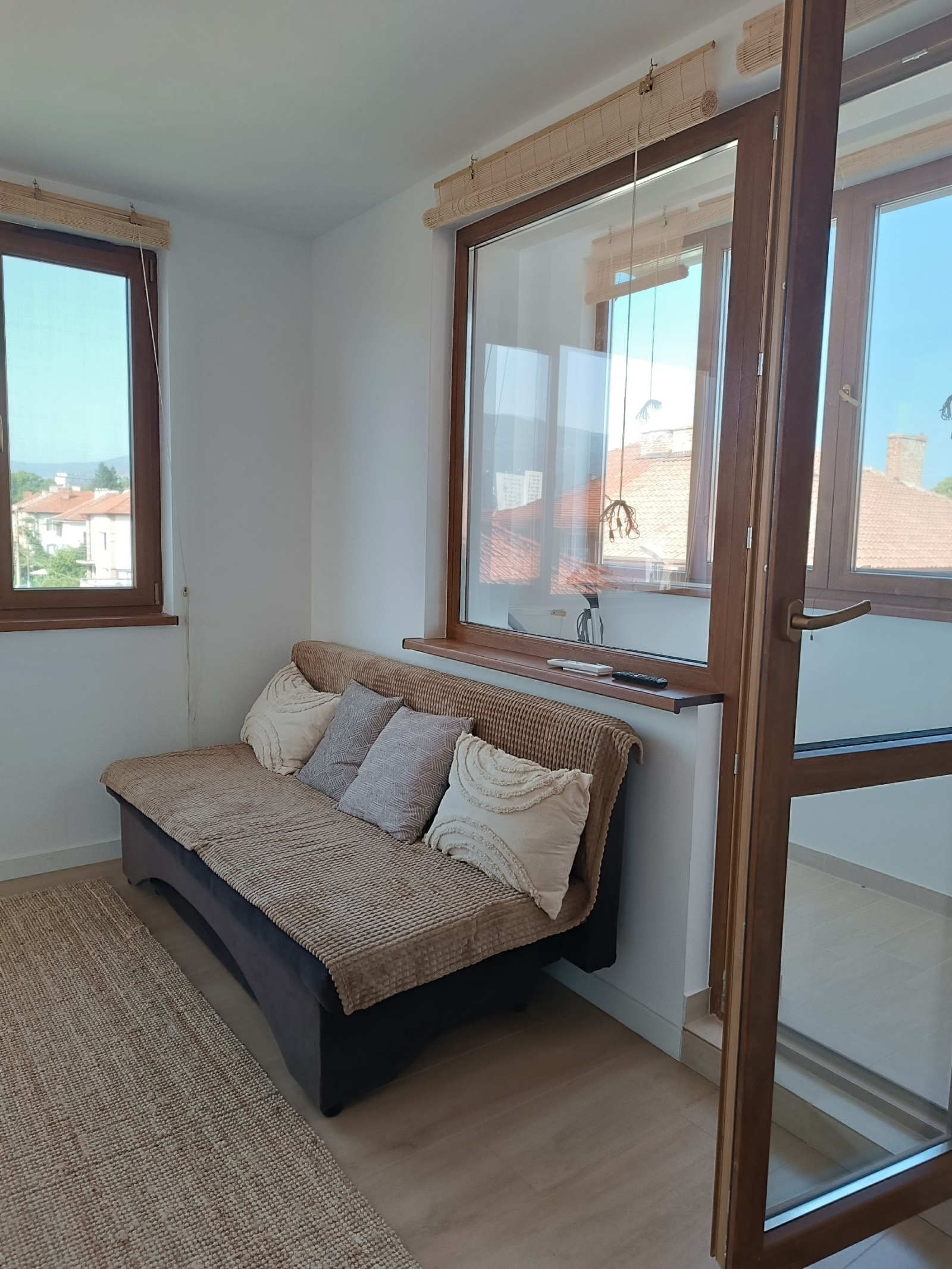 Продава трети етаж от триетажна масивна жилищна сграда, с общ вход. Дворното място е 200 кв.м. Етажът е със площ от 100 кв.м., към него - 1/3 ид.ч. от сутерен и 1/3 ид.ч. от таван. Състои се от коридор, три спални, всекидневна с кухня, баня с тоалетна и две тераси. Изцяло подменени инсталации, сменена дограма, топлоизолация на стени и тавани с 10 см минерална вата и гипсокартон. Нова кухня с вградени електроуреди. Отопление - енергоспестяващи радиатори и климатик. Продава се с наличното обзавеждане.
