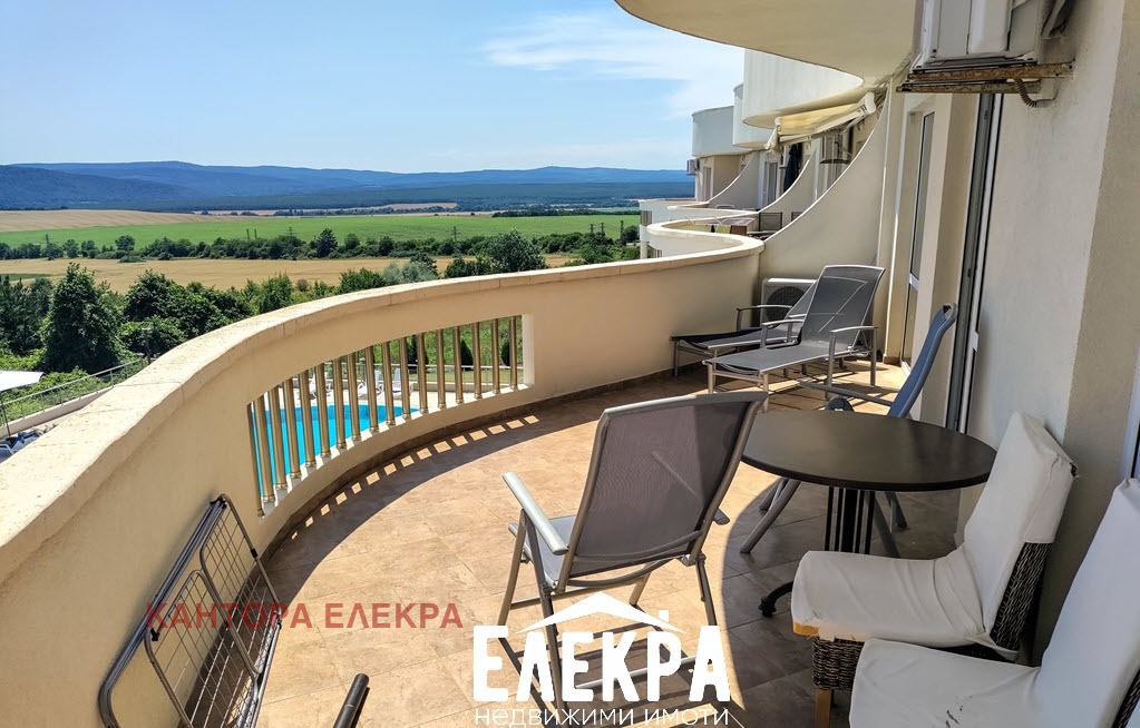Жилището се състои от входно антре, дневна с кухня, две спални, две бани с тоалетна. Апартаментът разполага с просторна тераса. От терасата можете да се насладите на релаксираща гледка към Черно море, пейзажа и зелените полета, които заобикалят комплекса.