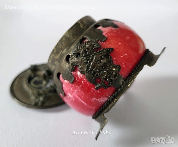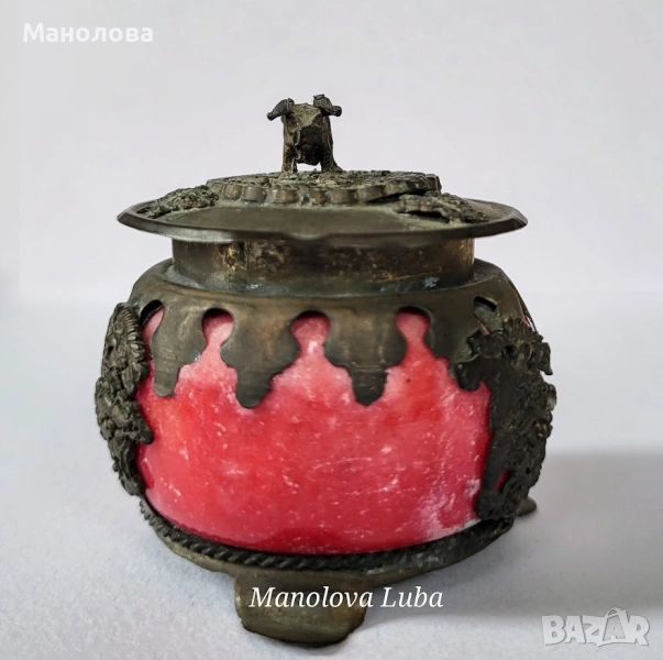 Кадилницата представлява рядко творение, защото съчетава традиционна богата украса и каменен дизайн. Датирана края на 19ти век.