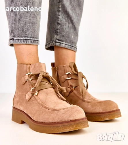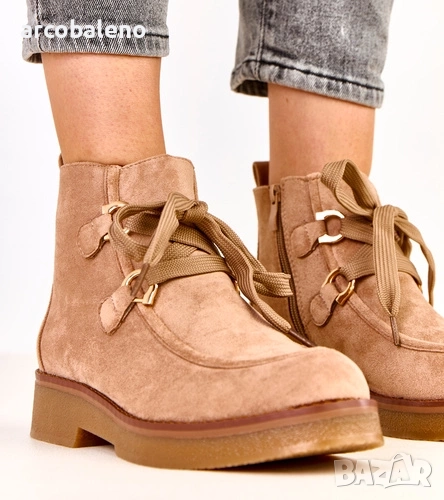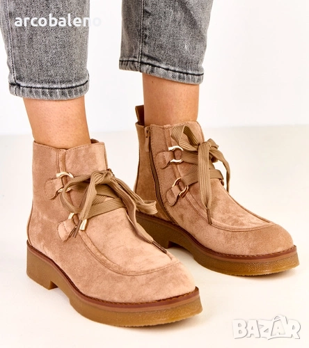 Дамски изолирани боти до глезена с декоративни връзки от Katrins, 2цвята