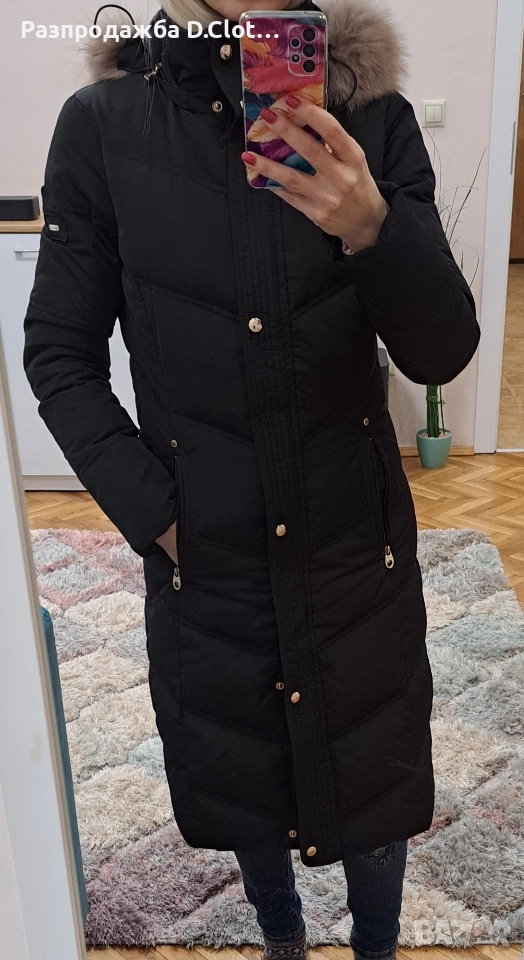 Оригинално дамско яке ,с естествен косъм на качулката ,която може да се сваля и гъши пух.Много топли.
