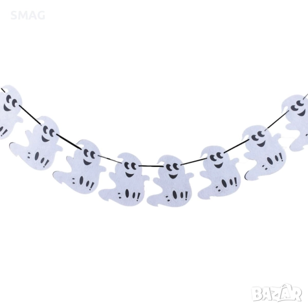Добавете игрив и страшен щрих към празничната си украса с този декоративен филцов гирлянд с 8 бели духчета (17x17 см). Изработен от мек филц, той е идеален за окачване на стени, прозорци, витрини или врати. Създава празнична и забавна атмосфера, подходяща както за домашен декор, така и за Halloween / Хелоуин партита.