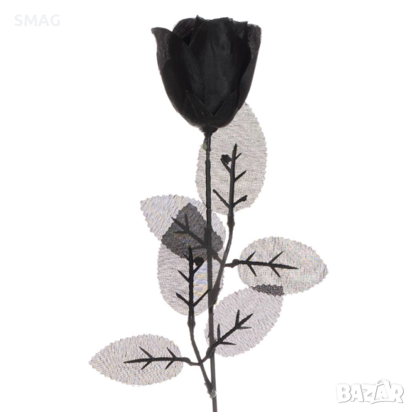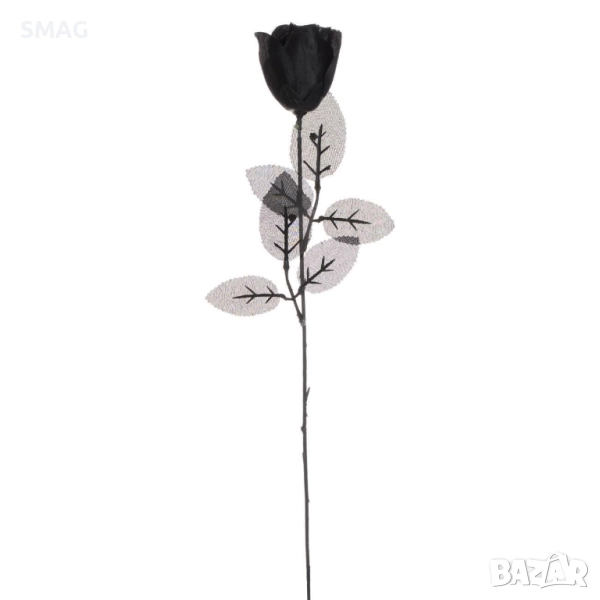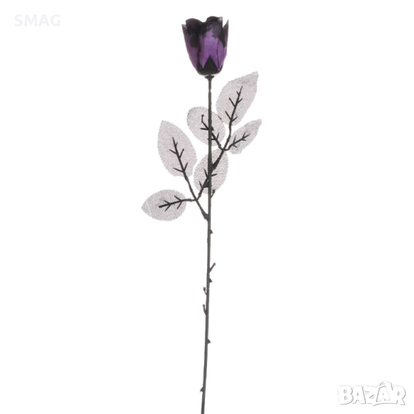 Елегантна Halloween / Хелоуин декорация – декоративна роза в черно и тъмно лилаво с дълга дръжка. Подходяща за тематични букети, вази или украса на маса. Идеален акцент за мистична и стилна атмосфера през празничния сезон.