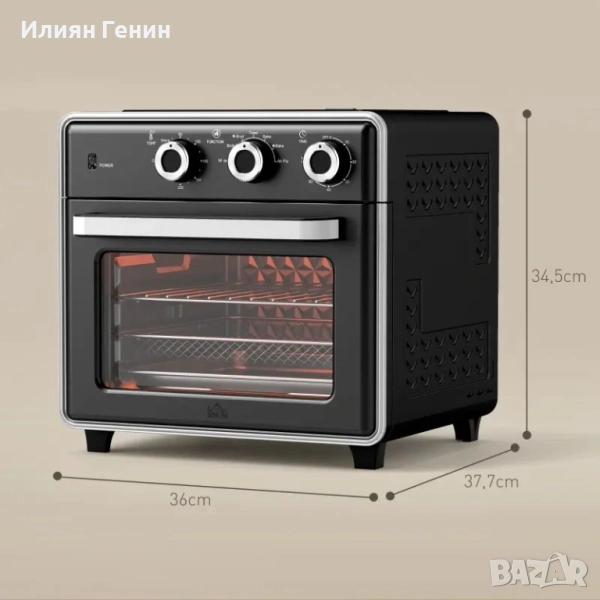 Мини фурна HOMCOM, 20 л, 5 функции, 360° конвекция, решетка за грил, тава за трохи, черна - 180.00лв.