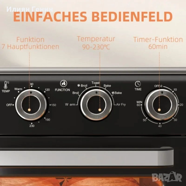Многофункционална и универсална: С тази мини фурна можете без усилие да печете на скара, препичате, печете, пържите и поддържате храната топла – всичко това в един компактен уред. Идеална за малки кухни или като допълнение към вашия декор, тя ви дава гъвкавостта, от която се нуждаете, за да приготвяте вкусни ястия.