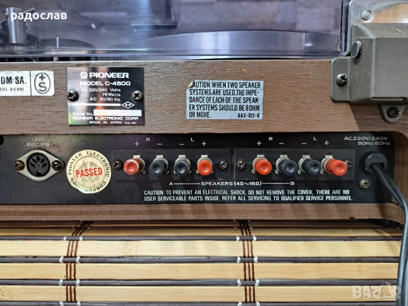 Чувствителност на фоно входа 2,5 mV 50 kOhms