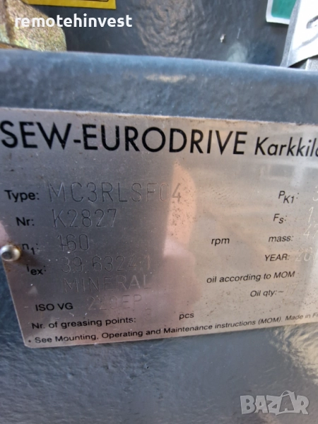 Конусно-цилиднричен редуктор SEW-Eurodrive MC3RLSF04 , снимка 1 - Други машини и части - 52025368 Конусно-цилиднричен редуктор SEW-Eurodrive MC3RLSF04 , снимка 2 - Други машини и части - 52025368 Конусно-цилиднричен редуктор SEW-Eurodrive MC3RLSF04 , снимка 3 - Други машини и части - 52025368 Конусно-цилиднричен редуктор SEW-Eurodrive MC3RLSF04 , снимка 4 - Други машини и части - 52025368 Конусно-цилиднричен редуктор SEW-Eurodrive MC3RLSF04 , снимка 5 - Други машини и части - 52025368 1/5