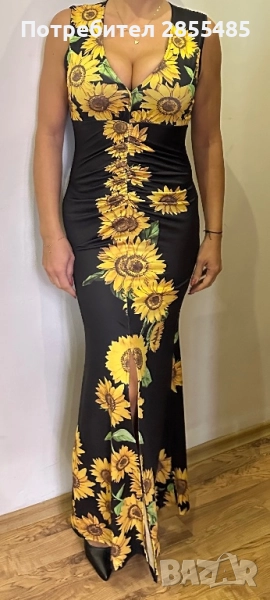 Рокля със слънчогледи дълга, снимка 1 - Рокли - 52025588 Рокля със слънчогледи дълга, снимка 2 - Рокли - 52025588 Рокля със слънчогледи дълга, снимка 3 - Рокли - 52025588 1/3