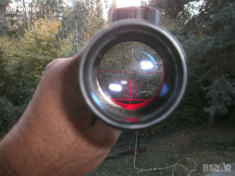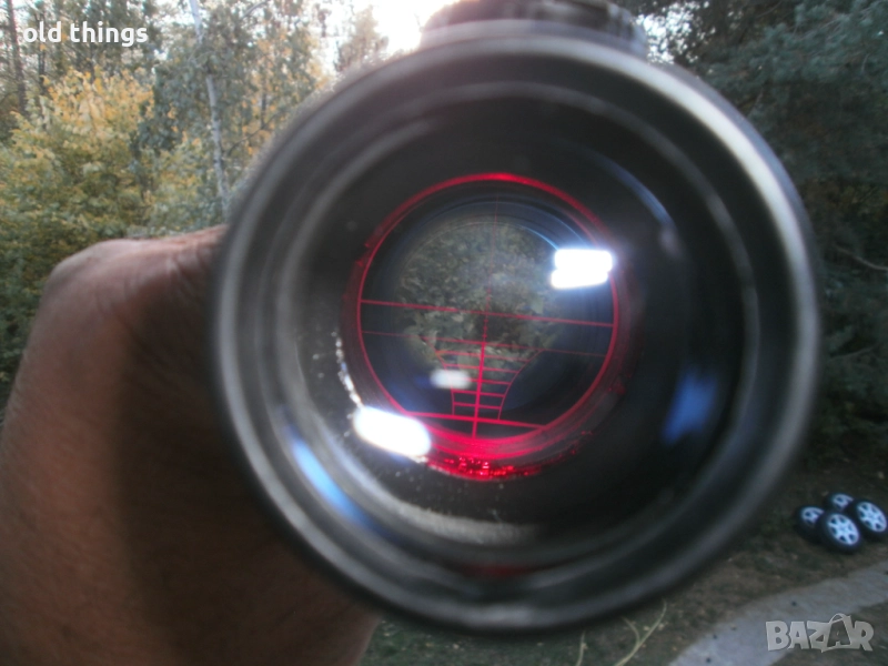 Продавам оптика Tasco 3-9x40E с подсветка в много добро състояние.Ползвана е на ловен автомат АК 47.Дължината е 32см.Подсветката е в червено на 11 степени.Оптиката е с ДОТ скала показана на снимките.Издържа на силен откат и е подходяща дори за най-мощните пушки - бойни или въздушни.