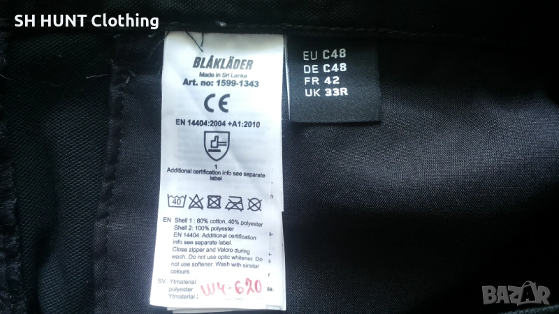 Марка: BLAKLADER 1599-1343 Craftsman Work Stretch Trousers - работен панталон с от части еластична материя. Има джоб на коляното за наколенка , гъба. Размер: 48 / M - ширина в талията 44,5 см , дължина 105 см.