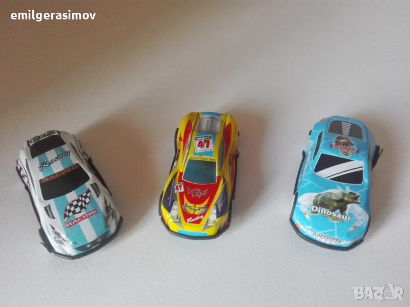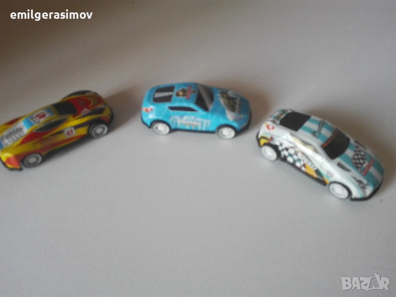 4.Три ламаринени колички с дължина 7 см. Здрави. Цена 6 евро за трите