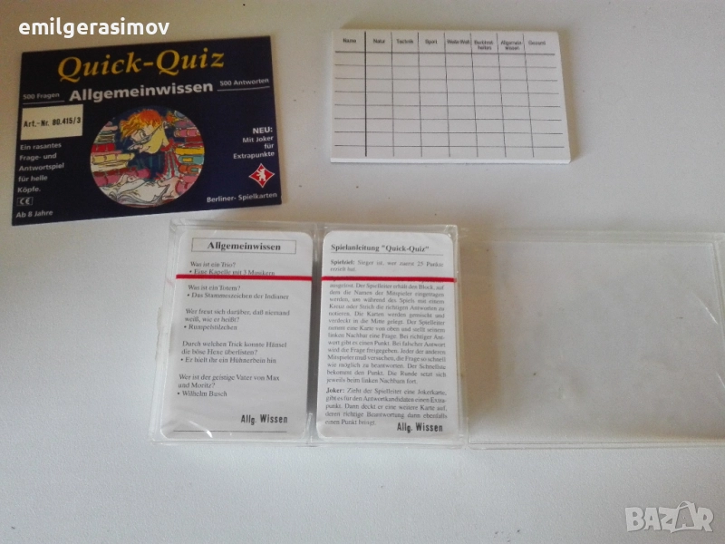 1. Quick-Quiz {Бърз тест) . Нова , неупотребявана образователна детска игра с две колоди карти. Разпечатах едната
