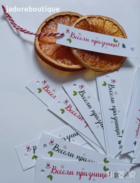 22 броя в комплект. Изработени от картон. Всеки таг има и дупка за закачане на панделка, въженце, шнур или друго по Ваш избор. Това не е включено в комплекта!