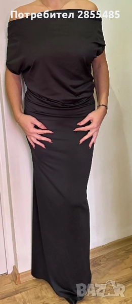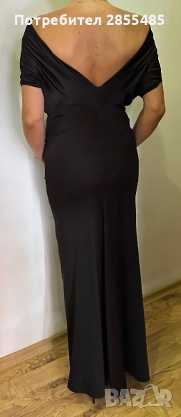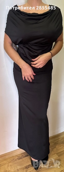 Дълга, мека, еластична, черна рокля. Подходяща за различни поводи.