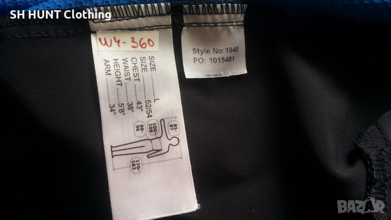 Размер: L - ширина под мишниците при нормално положение 59 см , разтяга се до 64 см , дължина 90 см заедно с яката , 79 см без яката.