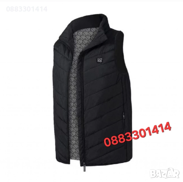 Нова черна електрическа жилетка с отопление. Подходяща за студените дни и активни хора.