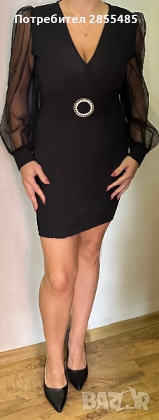 Рокля черна с ръкави от тюл, снимка 1 - Рокли - 52026439 Рокля черна с ръкави от тюл, снимка 2 - Рокли - 52026439 Рокля черна с ръкави от тюл, снимка 3 - Рокли - 52026439 1/3