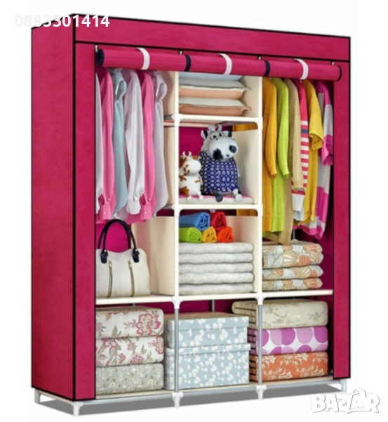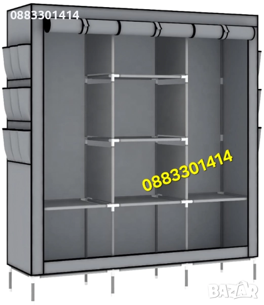 Практичен гардероб с цип и три отделения, предлагащ много място за съхранение на дрехи, бельо и други вещи. Подходящ за спалня или гардеробна. Изработен от здрав материал в тъмен цвят, който ще допълни всеки интериор.