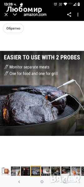 【Лесна настройка на приложението】Не се изисква регистрация или настройка на WiFi! Приложението за безжичен термометър с интуитивен интерфейс ви позволява да персонализирате целевата температура и предварителните аларми, така че можете да се отпуснете и да чакате да бъдете уведомени, когато храната ви е готова, получавайки перфектни резултати всеки път.