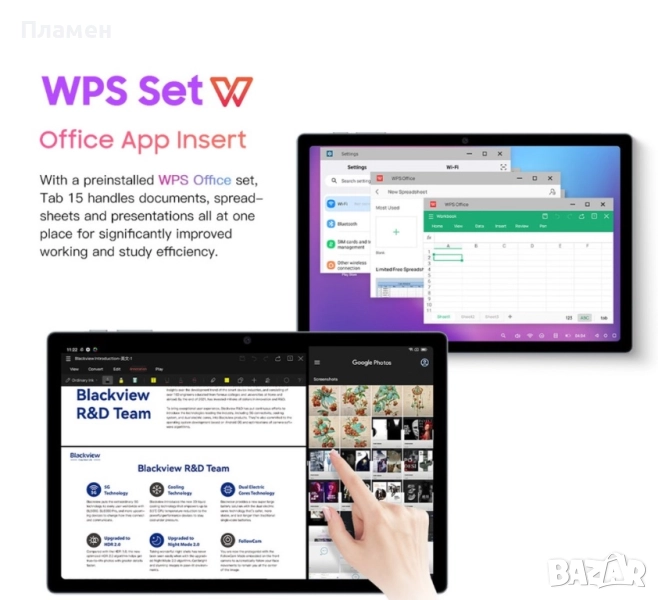 Blackview Tab 15 поддържа две SIM карти и 4G връзка което позволява постоянен достъп до интернет дори без WiFi Работи с операционна система Android 12 която осигурява бърз достъп до всички модерни приложения и подобрена сигурност